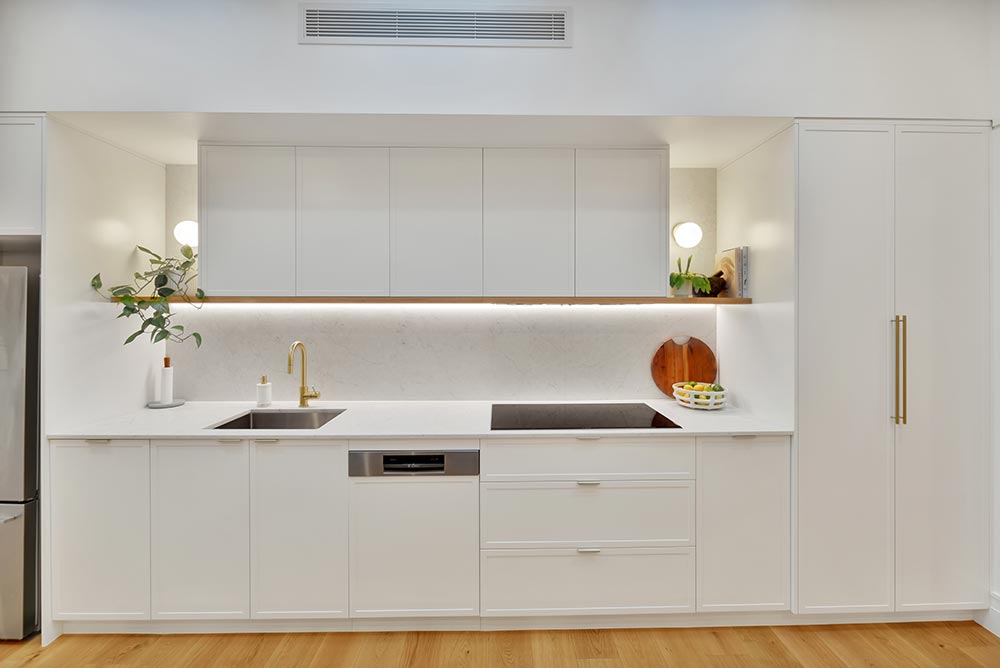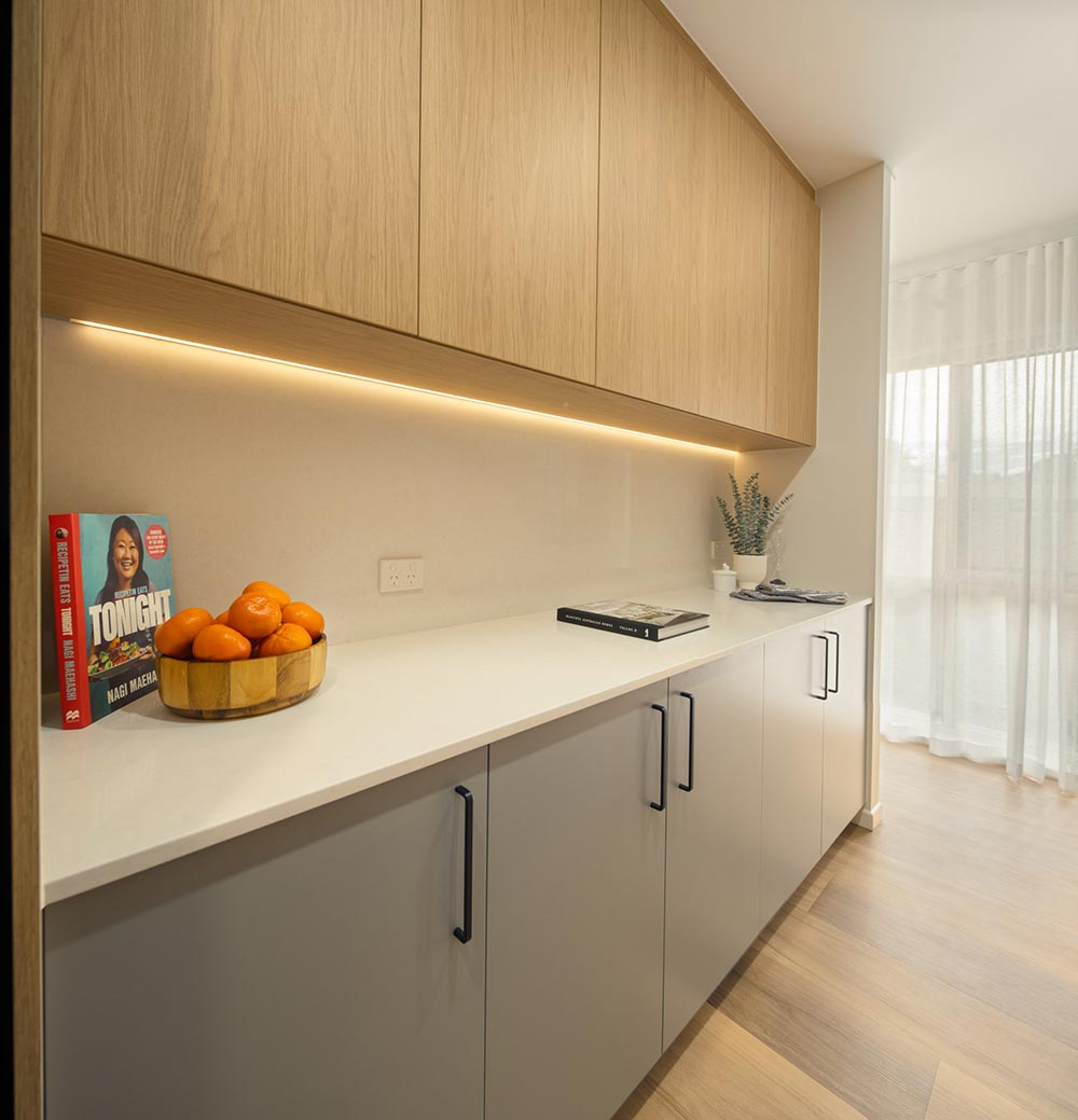 Defined by clean lines, integrated detailing and precision craftsmanship, this project demonstrates how considered cabinetry can transform apartment living—delivering warmth, efficiency and timeless modern appeal.